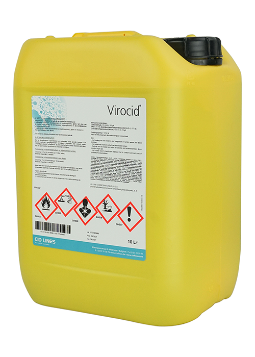 Virocid® is een geconcentreerd desinfectiemiddel op basis van quaternair ammonium, glutaaraldehyde en isopropanol.
