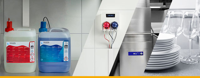 Professional dishwashers must be dosed correctly. Also, the washer must always function under any circumstances, be duarable, and if possible: look neatly. We use high quality dosing systems which last a long time. To hold true to this promise, at least once a year our service team comes by to do maintenance on the machine. We also like to think about placement and appeal. Our dosing systems come standard equipped with a reporting system that indicates when you’ve run out of cleaning agents. Another system reports the amount of washings that have been done. Last but not least, an sensor measures wether the soap dosage is right, for an uniform result and low costs. Dosing systems are not cheap, so we have them for hire instead.